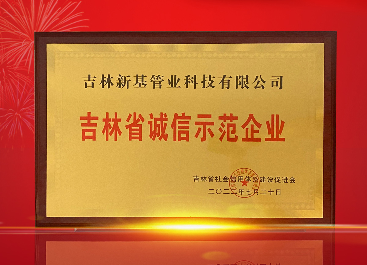 喜報丨新基管業(yè)再次榮獲"吉林省誠信示范企業(yè)"榮譽(yù)稱號